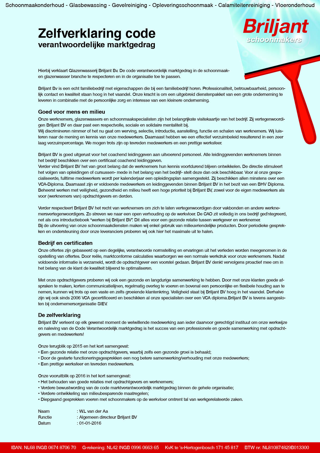 Hieronder staan enkele belangrijke bedrijfsdocumenten. In de naastgelegen kolom kunt u ze allen downloaden. Als schoonmakers zijn we ook hierover glashelder en transparant.